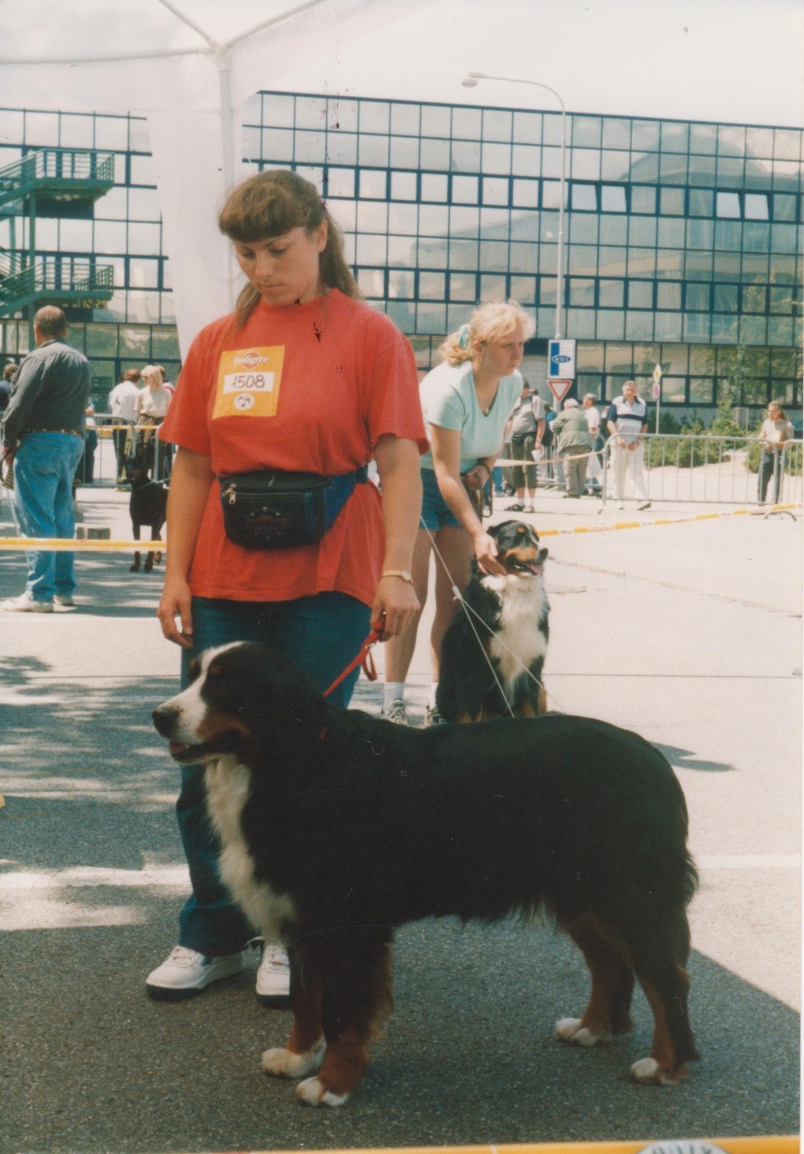 Elza z Gandlyho dvora - naše první a nejmenší berňačka, o co menší vzrůstem, o to větší srdcem. Čekali jsme na ni přes rok a pak jsme se dočkali - první jarní den roku 1993 s mým bratrem Vladimírem ( Březovským - majitelem CHS) a sestrou Alenou vlakem přicestovala ze slovenské chovatelské stanice z Gandlyho dvora od pana Ďuriška. Malé, ale čilé štěňátko nás překvapovalo svými schopnostmi... Zkuste strhnout ubrus ze stolku tak, aby se vázička se sněženkami ani nezakývala...a přitom mít za sebou jen 8 týdnů života a řadu hodin ve vlaku :-) Byla úžasná a jedinečná, téměř všeho schopná - včetně chůze po žebříku nebo podávání si aportu tlapkami, když zapadl tam, kam se nevešla hlava :-). Okouzlila nás natolik, že jsme berňáčkům propadli navždy. Byla samostatnou, vzornou matkou 5 vrhů štěňátek ( viz Vrhy). Nejlepších výstavních hodnocení se dočkala jako veteránka, neboť jedinou její chybou byly výrazné skvrny na nose, které věkem prošedivěly. V tom nezapřela své maďarské silně pigmentované předky. Odešla tiše na selhání ledvin v nedožitých 10 letech 28.10.2002. Svůj život prožila přímo v CHS v Hodolanech ( okrajová část Olomouce).